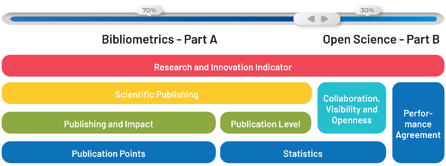 The result was a two-part indicator. Part A is bibliometric and combines publication counts with a weighted citation measure.
