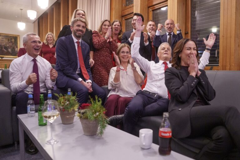 Foto: Partileder Jonas Gahr Støre på bakrommet under Arbeiderpartiets valgvake på Folkets Hus under stortingsvalget 2025. Foto Javad Parsa NTB