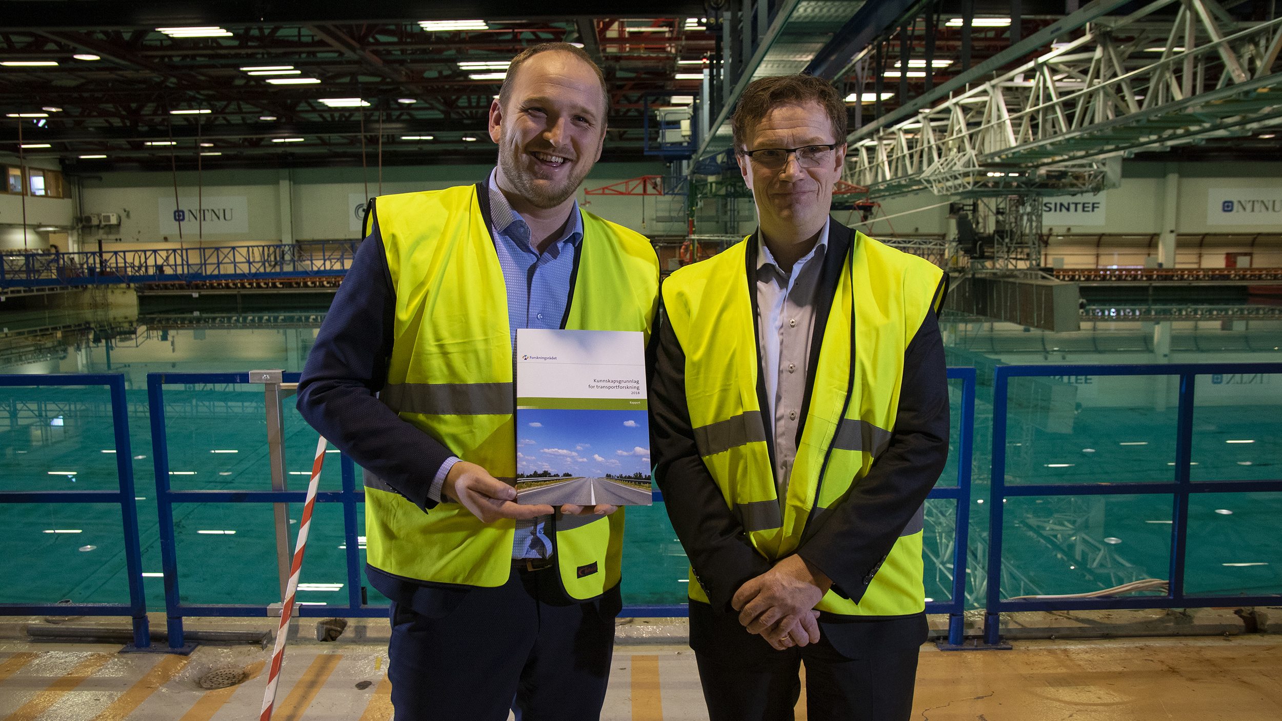 Hoivedfoto: Samferdelsminister Jon Georg Dale mottar transport-rapporten fra avdelingsdirektør i Forskningsrådet John Vigrestad. Foto: Samferdselsdepartementet.